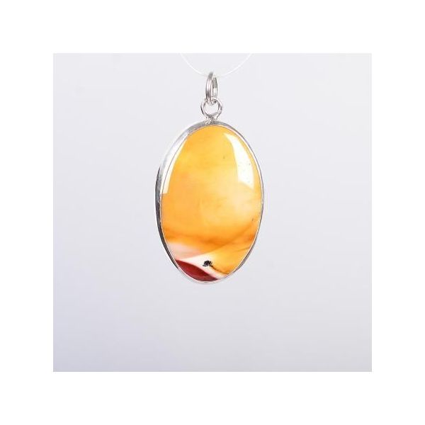 Wisior z naturalnym mokaitem w owalnym kształcie, umieszczony w srebrnej oprawie. Ten unikalny wisior-talizman łączy w sobie oryginalny wygląd oraz moc naturanego kamienia.