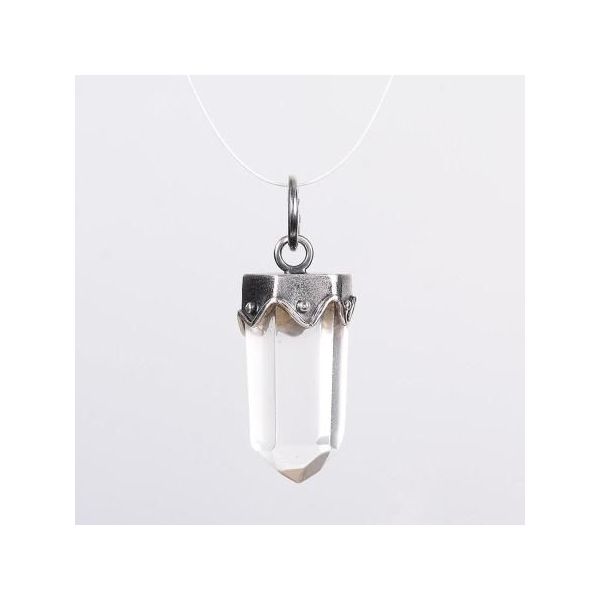 Wisior z kryształem górskim, oprawiony w srebro ręcznie fakturowane, barwione i częściowo polerowane. Ten piękny wisior-talizman łączy w sobie oryginalny wygląd oraz moc naturanego kamienia.